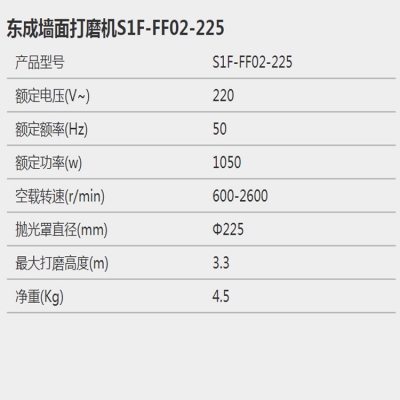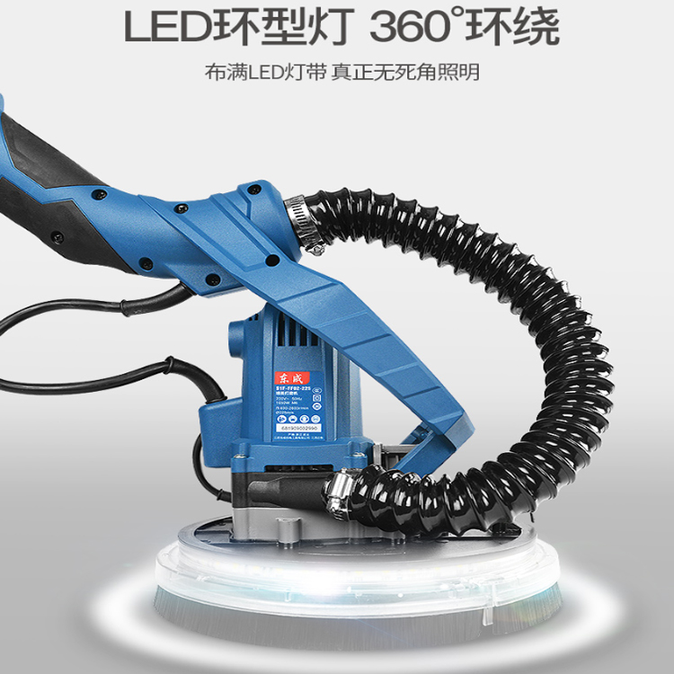 東成墻面打磨機S1F-FF02-225墻面打磨機墻面磨光機可調(diào)速自吸式LED燈