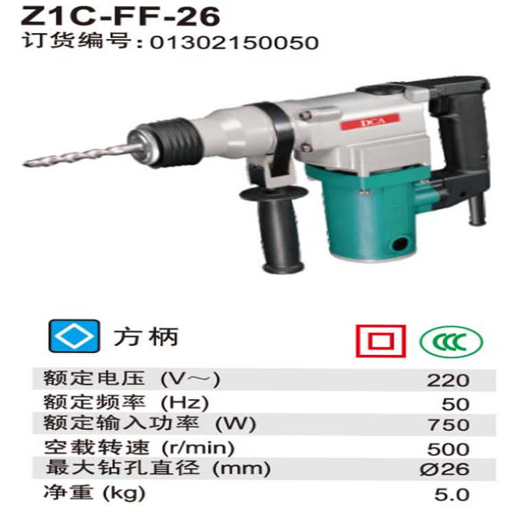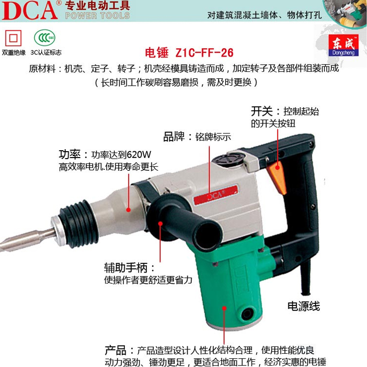DCA電錘Z1C-FF-26主要用來在混凝土、樓板、磚墻和石材上鉆孔。