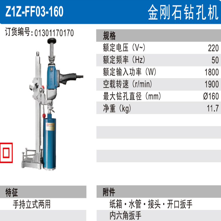 東成金剛石鉆孔機(jī)Z1Z-FF03-160銅管供水無(wú)水封款銅管供水,適合干打、濕打