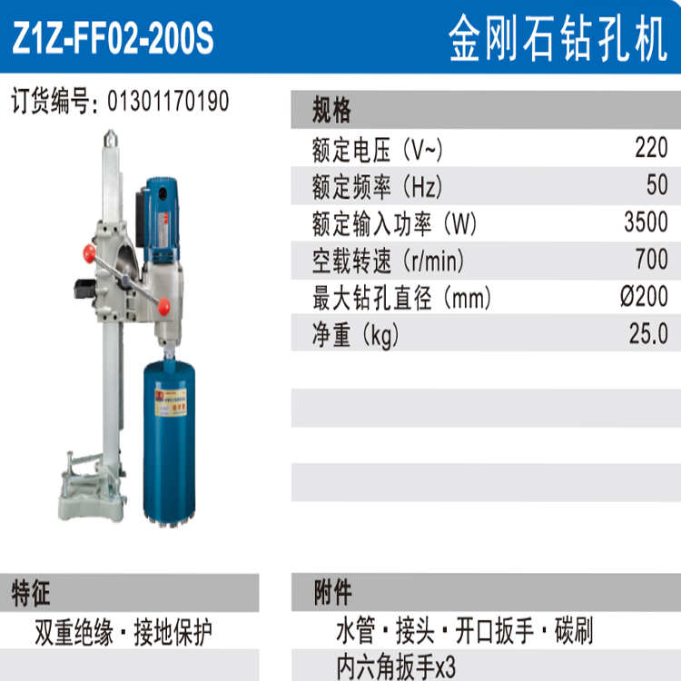 東成金剛石鉆孔機(jī)Z1Z-FF02-200S精鋼鑄造,精細(xì)加工精度更高,耐用性更好不卡