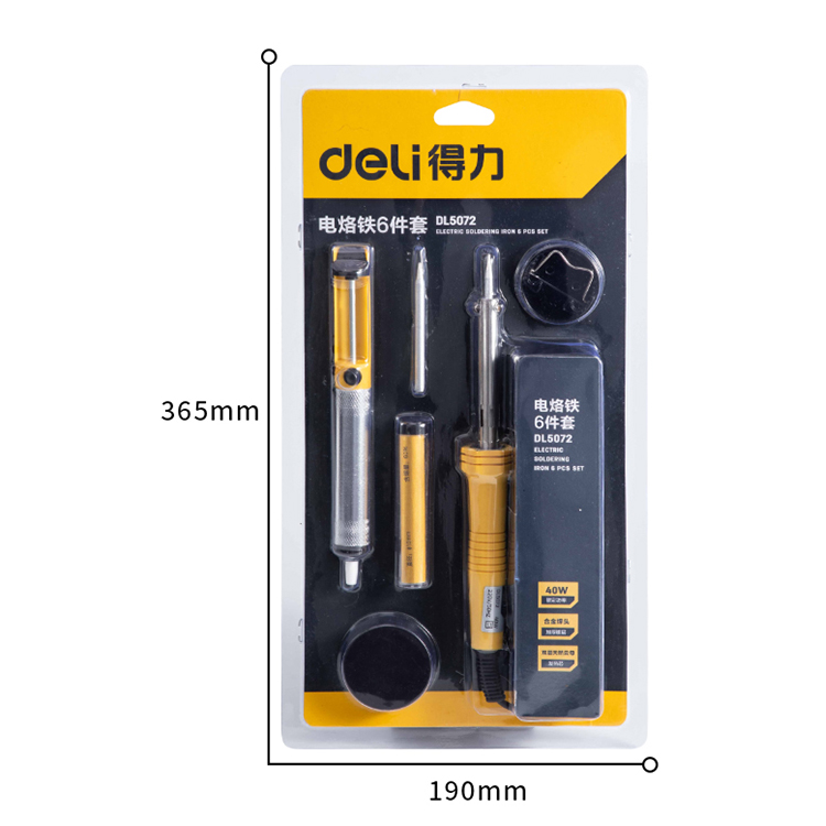 得力DL5072電烙鐵6件套(黃),產(chǎn)品配置國標(biāo)3C電源線,安全更可靠。