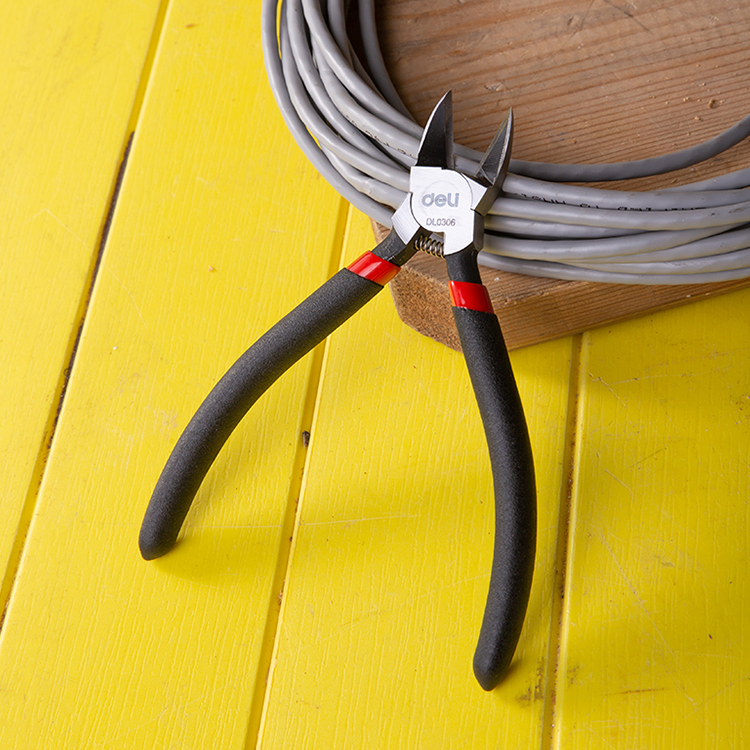 得力斜嘴偏口小口水剪線(xiàn)水DL0306口鉗(紅)電工工具,