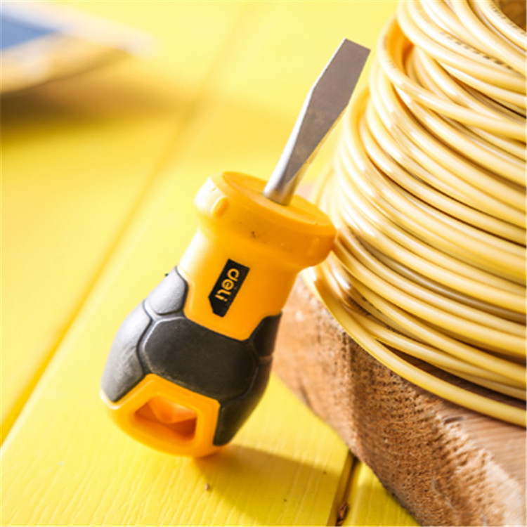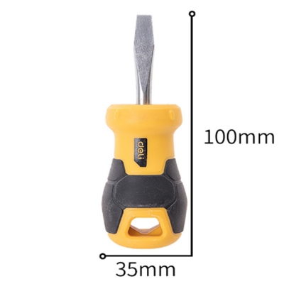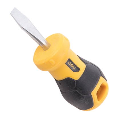 得力工具兩用螺絲刀橡塑雙材料手柄,表面有精致花紋,握柄前端防轉(zhuǎn)凸點設(shè)計。