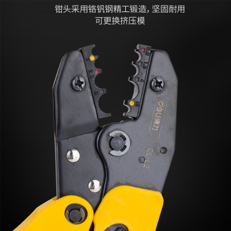 得力小型管型壓線鉗冷壓端子鉗DL-L2,合金鋼鉗口,可更換擠壓模,堅固耐用。