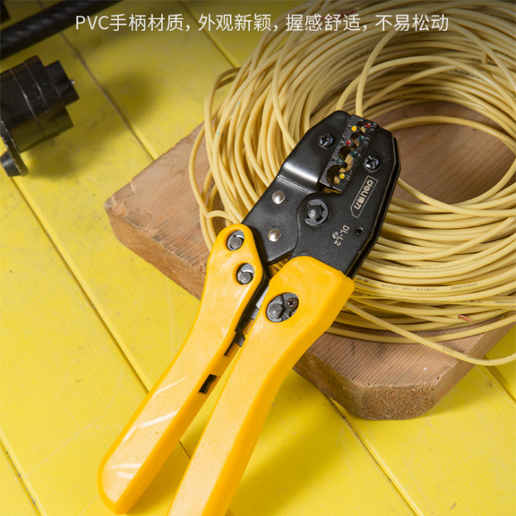 得力小型管型壓線鉗冷壓端子鉗DL-L2,手柄采用PP+TPR材料合成,握感舒適。