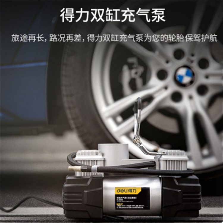 得力工具車載充氣泵雙缸設(shè)計(jì),充氣速度快。