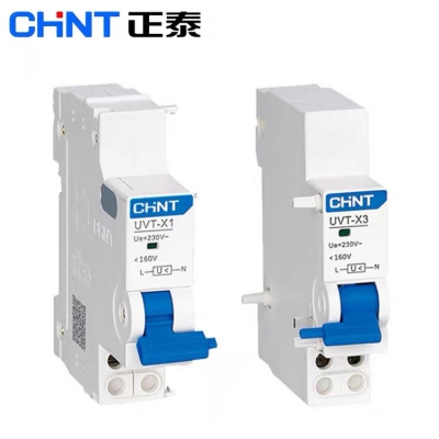 正泰UVT-X3欠電壓脫扣器與斷路器拼裝,實現(xiàn)遠距離分勵脫扣。