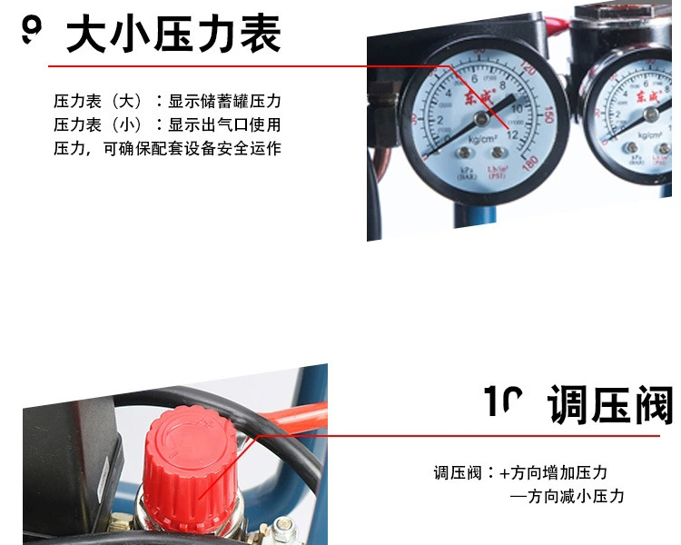 啟動開關(guān)/安全閥/全銅螺桿/大小壓力表/調(diào)壓閥