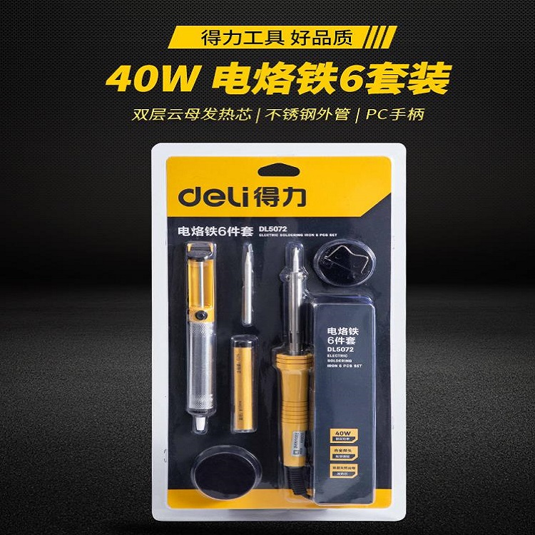 電烙鐵6件套(黃)產(chǎn)品配置國標(biāo)3C電源線,安全更可靠