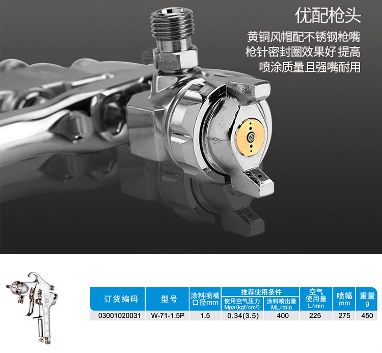 壓松式噴槍W-71-1.5P參數(shù)家具木器汽車氣動噴漆槍