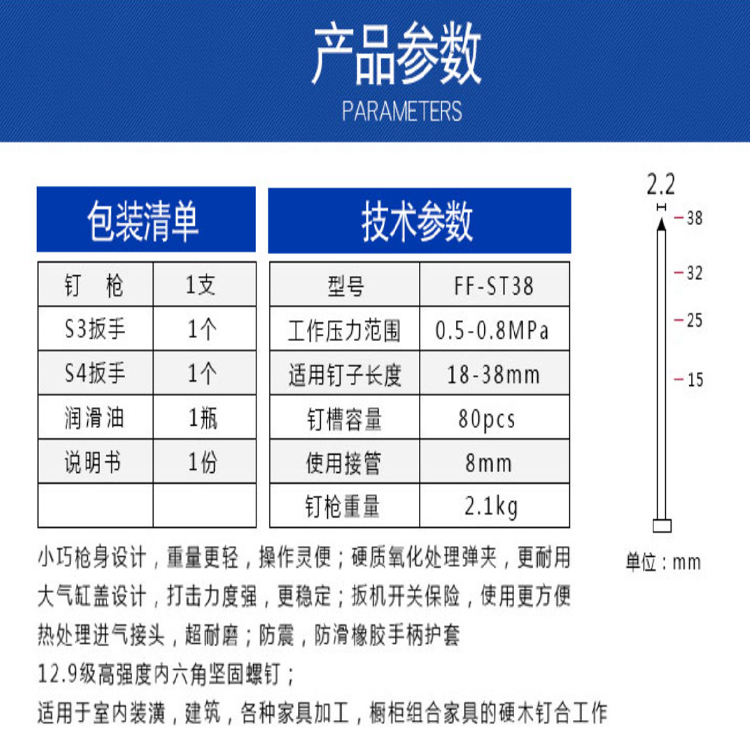 東成氣動(dòng)鋼釘槍FF-ST38氣釘槍鋼釘槍射釘槍