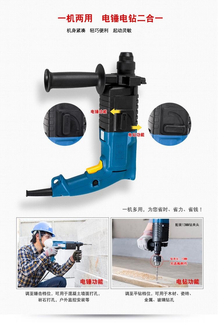 東成Z1C-FF02-20電錘沖擊鉆電鉆兩用多功能輕型電錘 可用于混凝土墻面打孔、木材瓷磚玻璃鉆孔