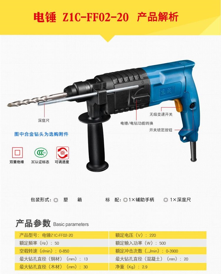 東成Z1C-FF02-20電錘沖擊鉆電鉆兩用多功能輕型電錘 東成電動工具 基本參數(shù)