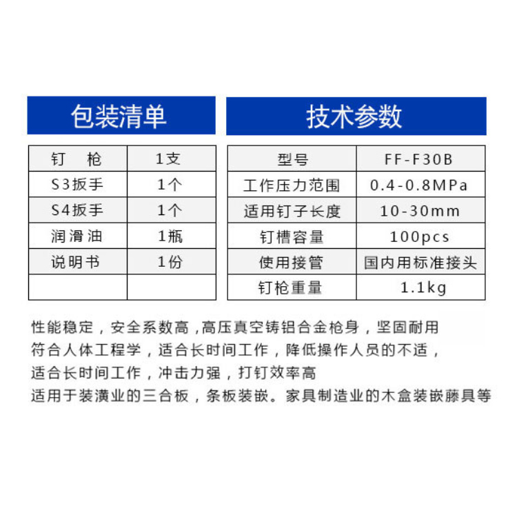 東成氣動直釘槍FF-F30B不易卡釘,高速便捷