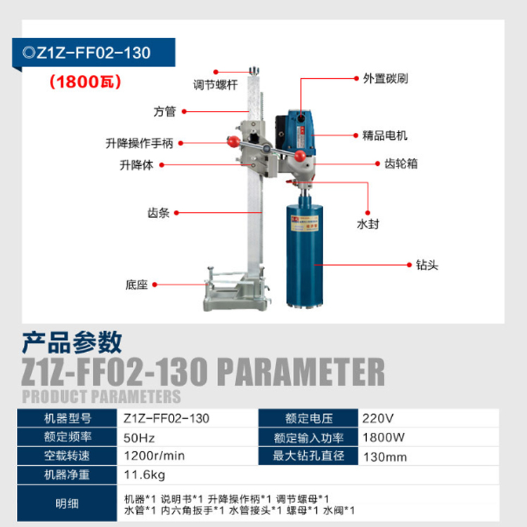 東成金剛石鉆孔機(jī) 升降體,平穩(wěn)升降鉆頭,受力均衡,工作輕松