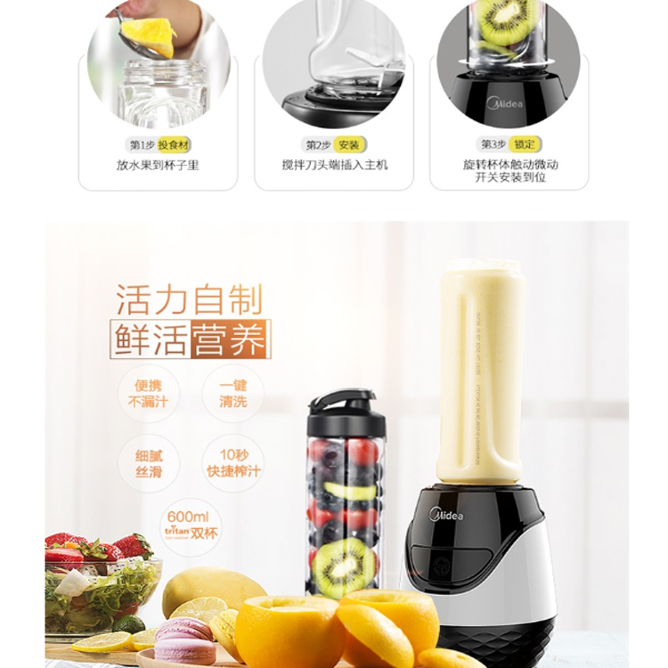 美的(Midea)便攜雙杯榨汁機(jī)四葉3D立體攪拌機(jī),精細(xì)研磨。