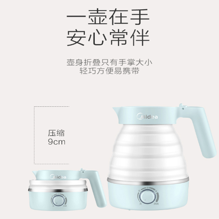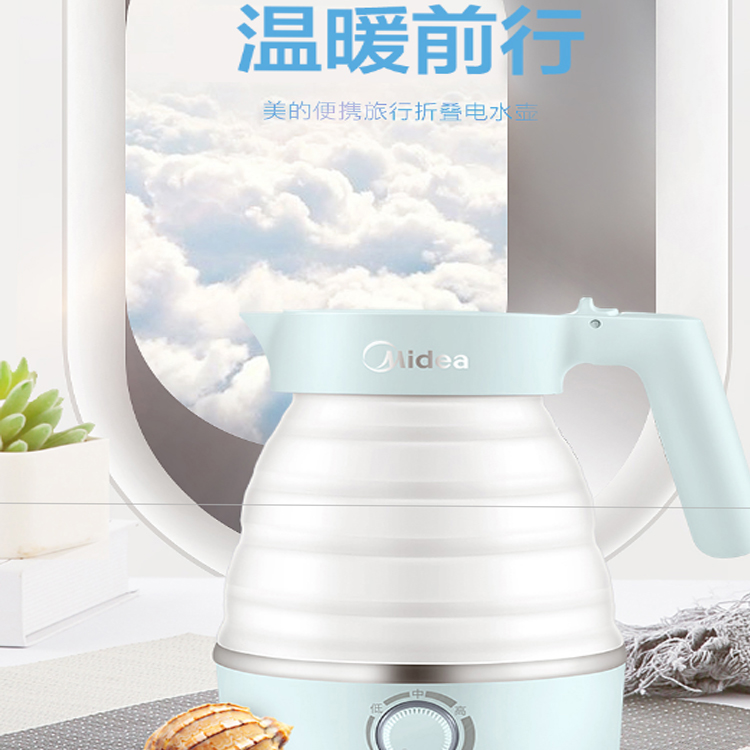 美的折疊電水壺玲瓏嬌軀,折疊更輕盈,為行李箱減負(fù)。