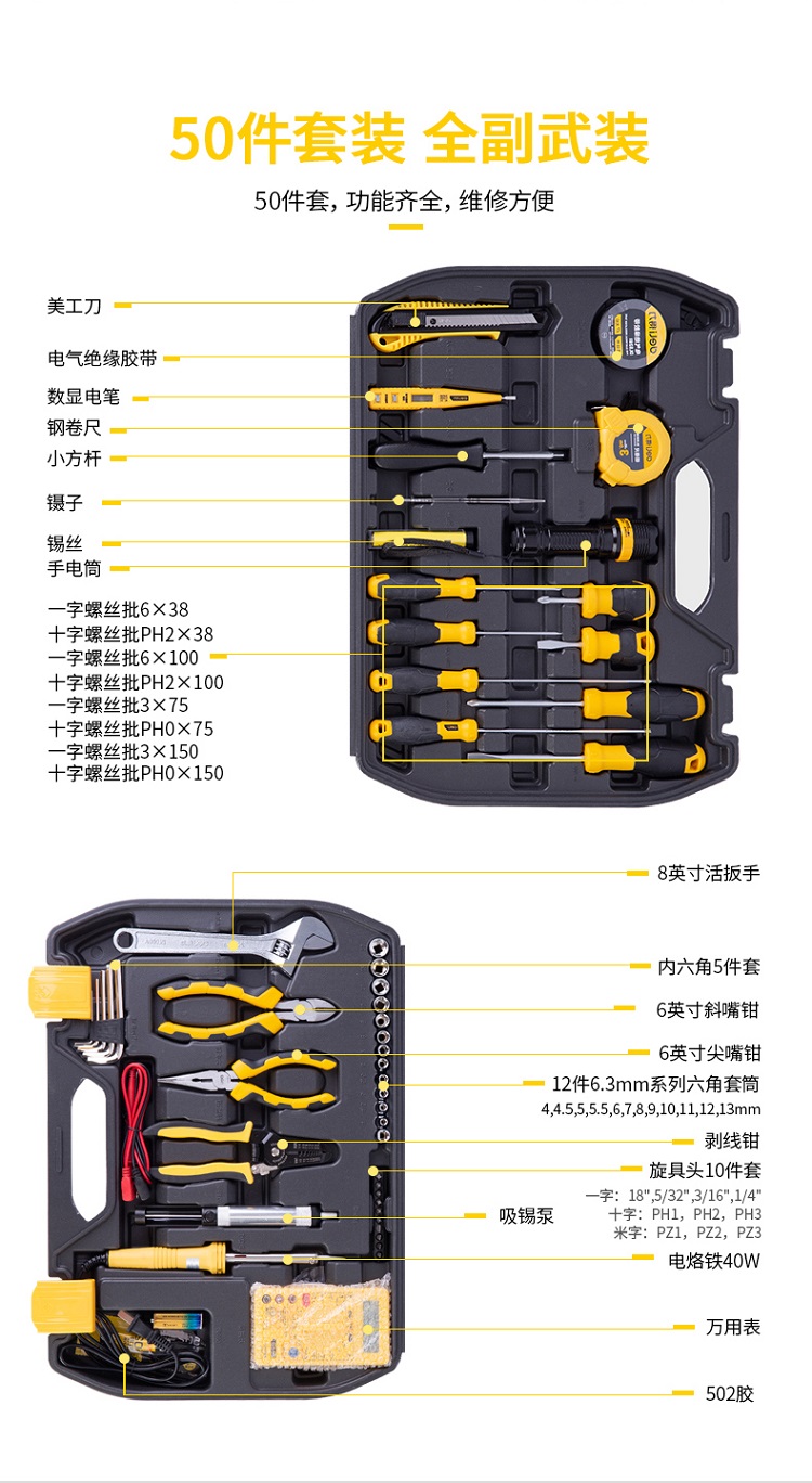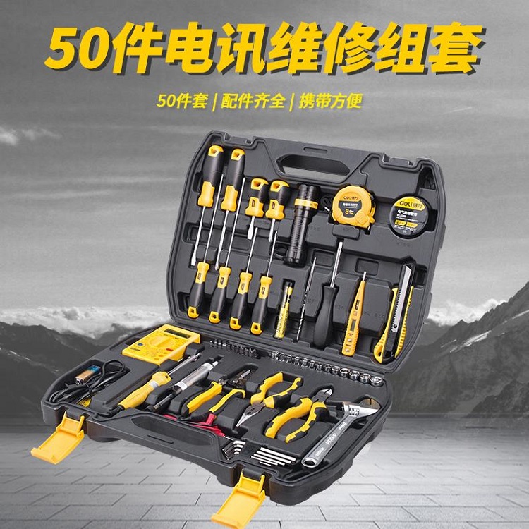 得力電工工具組套 家用電訊工具50件42件套裝帶萬(wàn)用表 電子維修工具箱
