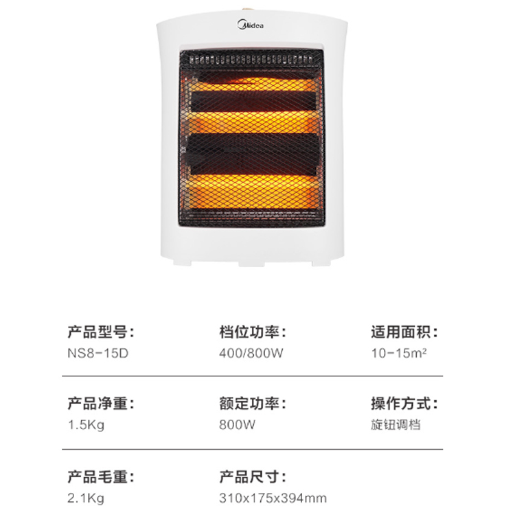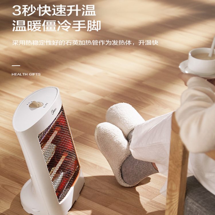 美的(Midea)取暖器采用熱穩(wěn)定性好的石英加熱管作為發(fā)熱體,升溫快。