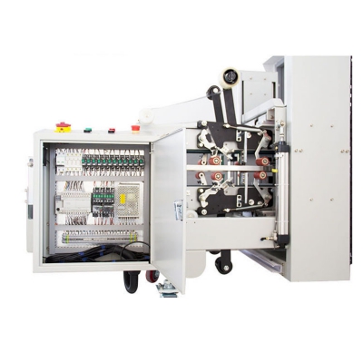 由推箱板推入角邊封箱機(jī),光電檢測到后機(jī)器根據(jù)紙箱規(guī)格,PLC控制,自動調(diào)節(jié)機(jī)器寬度及高度