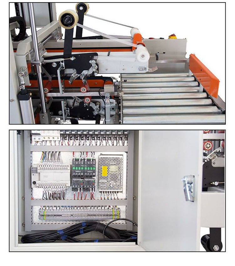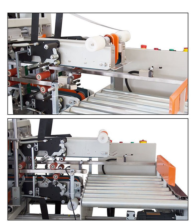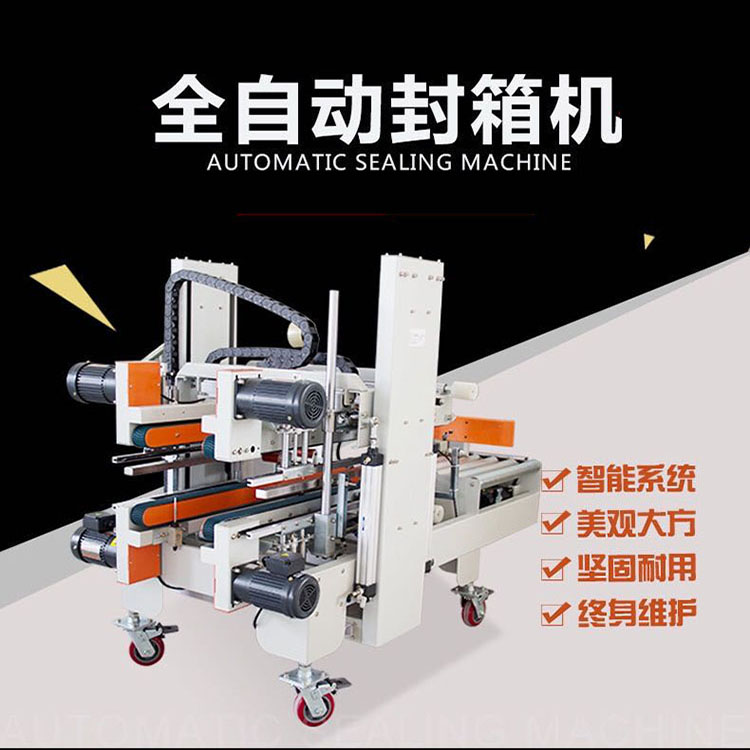 。自動同時封四角邊,封箱速度快,封箱折角無褶皺,紙箱上下四個角邊同時自動封口、撫平,