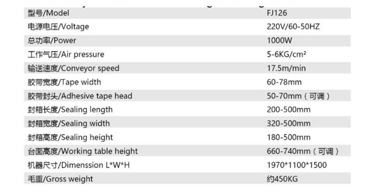 光明牌自動角邊封箱機(jī)/封箱機(jī)系列FJ126全自動角邊封箱機(jī) 產(chǎn)品參數(shù)圖