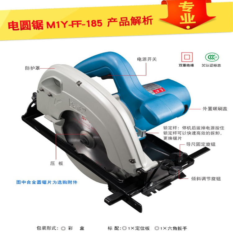 東成 電圓鋸 M1Y-FF-185 手提電鋸切割機(jī) 7寸木工板鋁塑板切割圓盤鋸