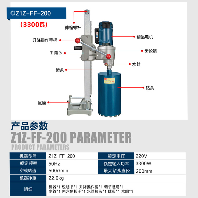 東成Z1Z-FF-200S 臺式水磨立式鉆孔機空調開孔機金剛石混凝土鉆孔機