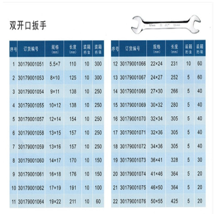 東成雙開口扳手防銹美觀堅(jiān)固耐用