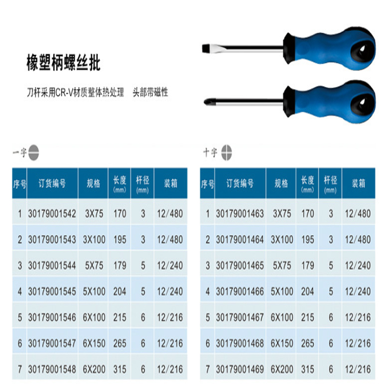 東成橡塑柄螺絲批刀桿采用CR-V材質(zhì)整體熱處理