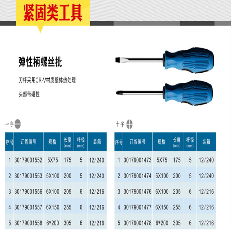 東成彈性柄螺絲批刀桿采用CR-V材質(zhì)整體熱處理
