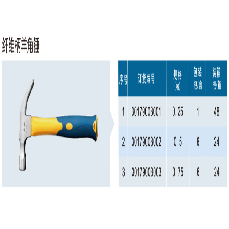 東成纖維柄羊角錘玻璃纖維手柄經(jīng)特殊鑲嵌工藝,防脫性能極佳