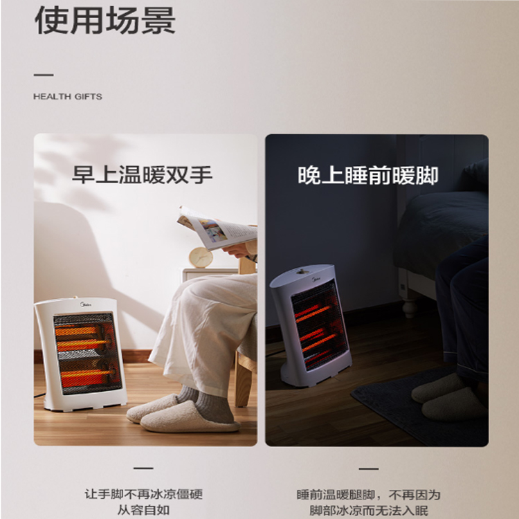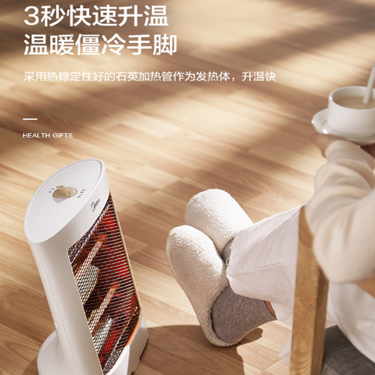 美的(Midea)取暖器采用熱穩(wěn)定性好的石英加熱管作為發(fā)熱體,升溫快。