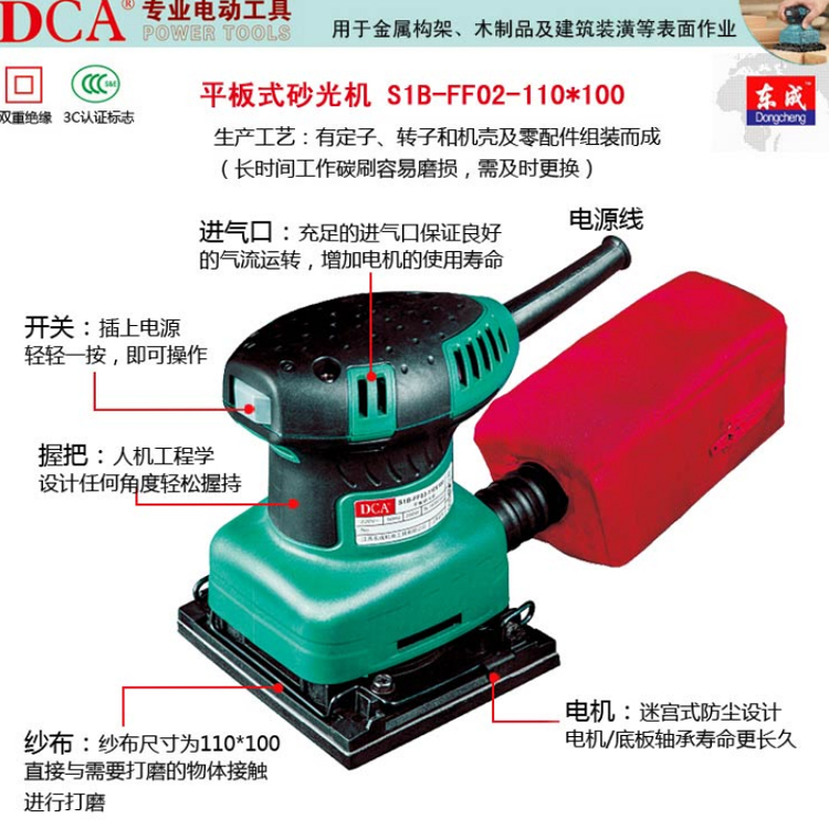 DCA平板式砂光機(jī)S1B-FF02-110x100一體式機(jī)殼 只需打開把手蓋輕松更換碳刷