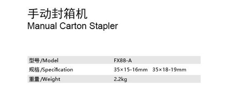 光明牌FX88-A紙箱封口機手動封箱機手動釘釘機 參數(shù)展示圖