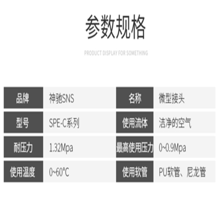 SNS神馳氣動SPE-C微型接頭采用優(yōu)質(zhì)接頭材料,品質(zhì)保證