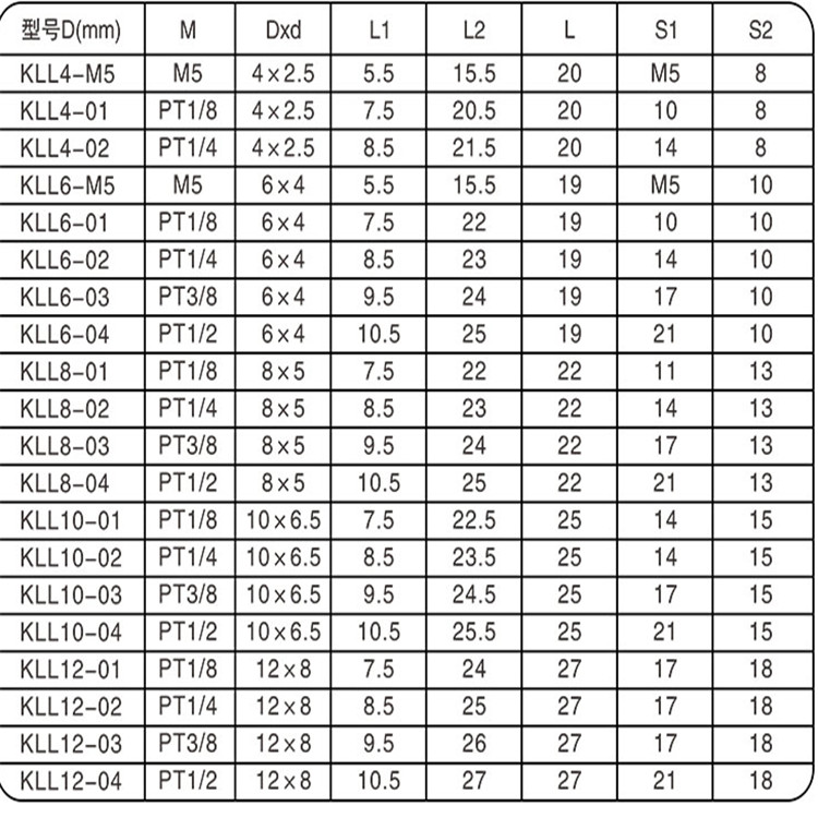 KLL快擰直通接頭產(chǎn)品參數(shù)