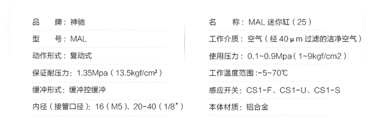SNS神馳氣動(dòng)MAL25系列鋁合金迷你小型氣缸可調(diào)行程