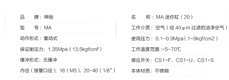 SNS神馳氣動(dòng)MA20系列迷你氣缸
