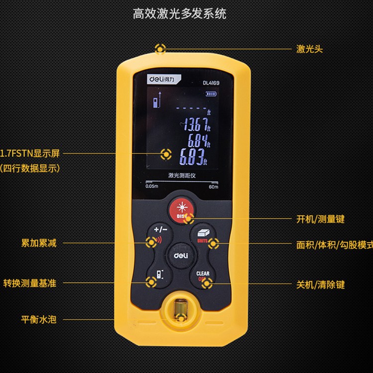 得力激光測距儀手持電子尺量房儀器目標(biāo)距離測量
