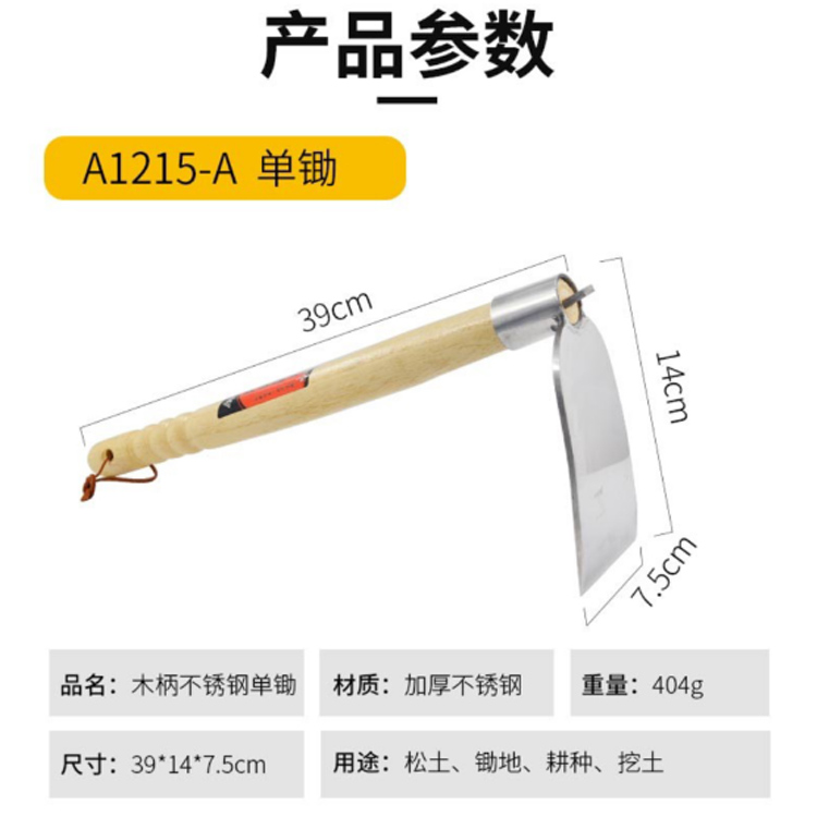 木柄不銹鋼單鋤參數(shù)展示圖