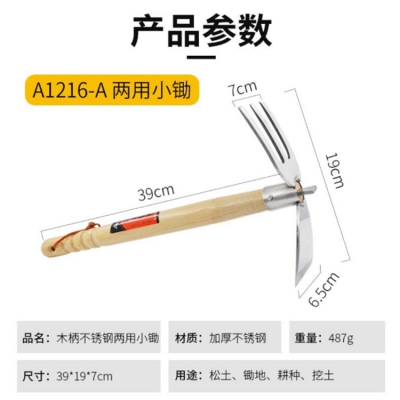 木柄不銹鋼兩鋤輕巧操作,方便好用