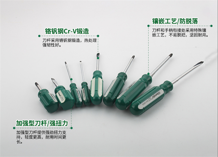 長鹿工具 彩條柄螺絲刀刀桿采用優(yōu)質鉻釩鋼鍛造,整體熱處理,硬度高,堅固耐