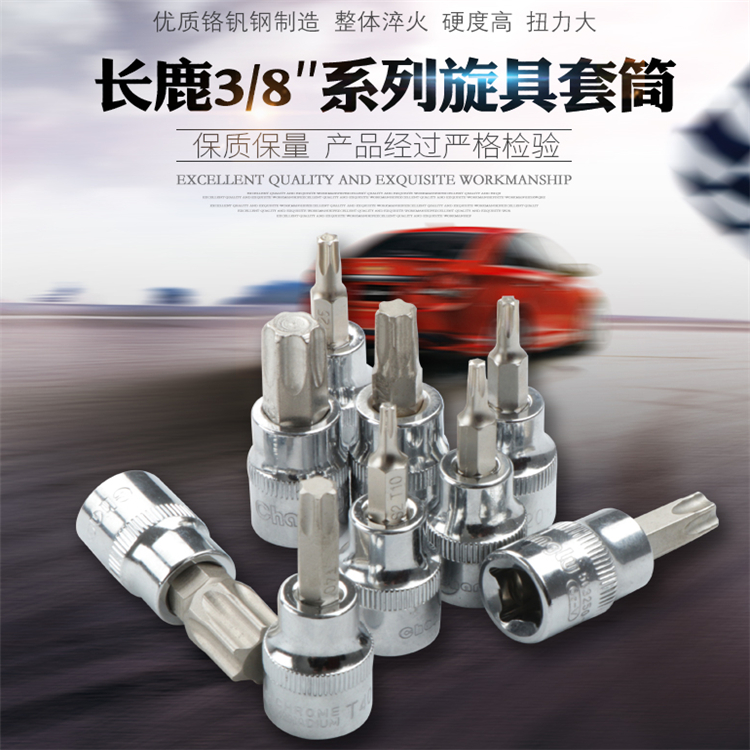 長(zhǎng)鹿T40旋具批頭套筒頭鍍鉻鏡面滾花,扭力大,不易斷裂。