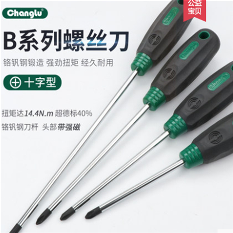 長鹿B系列螺絲刀十字梅花螺絲鉻釩鋼刀桿,頭部帶強磁。