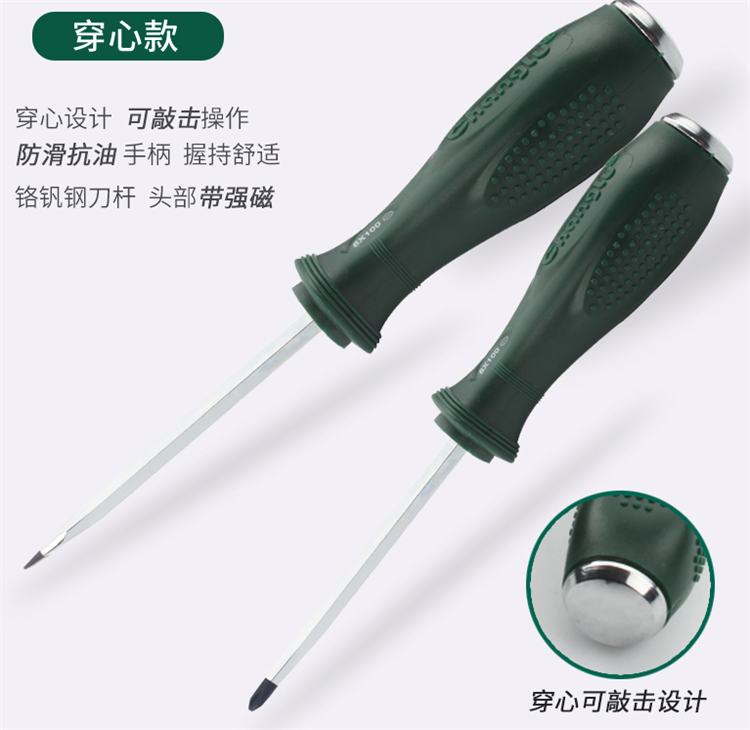 長(zhǎng)鹿抗油防滑螺絲刀批穿心設(shè)計(jì)、可敲擊操作、防滑抗油手柄、握持舒適。