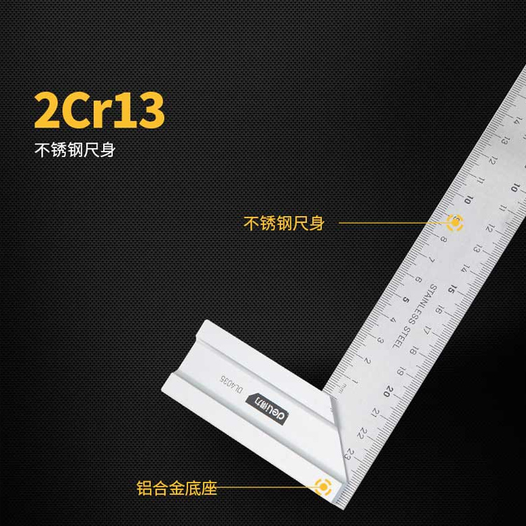 角尺不銹鋼材質(zhì)尺身,鋁合金底座,堅(jiān)固不易磨損