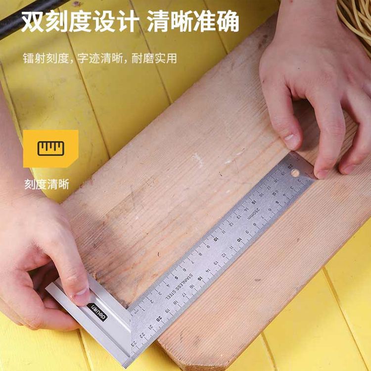 角尺雙刻度設(shè)計,清晰準(zhǔn)確,鐳射刻度,字跡清晰,耐磨實(shí)用