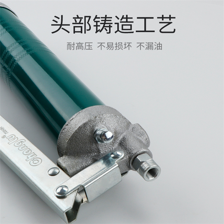 長鹿汽修換芯雙活塞黃油槍高強度耐壓鋅合金鑄頭,高強度鋼材槍身,耐油防滑護