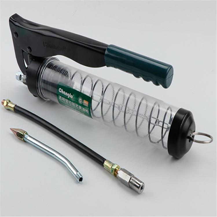 長鹿汽修透明管黃油槍透明槍筒,可耐高壓,不易損壞,可罐裝不同顏色的黃油能夠